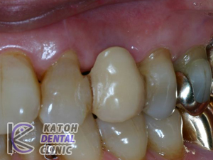 歯ぐきの外科治療により、審美的にも周囲と調和の取れた歯になりました。